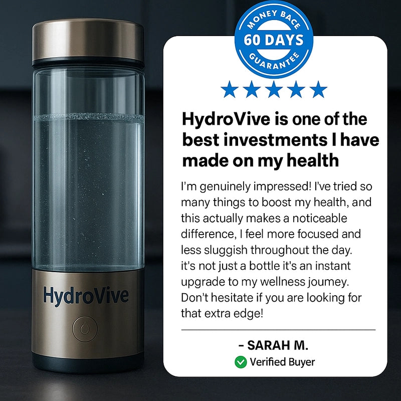 Experience hydration redefined. HydroVive bottles infuse your water with pure molecular hydrogen, a breakthrough backed by modern science. Every sip delivers powerful antioxidants that help reduce fatigue, support recovery, and promote overall vitality.