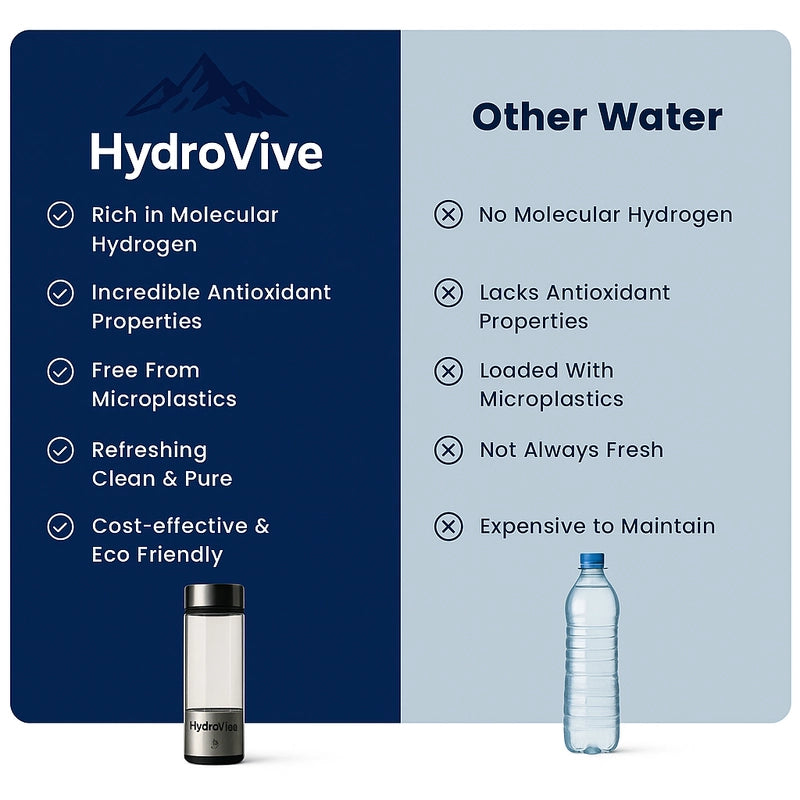HydroVive Vs. OthersWhen it comes to hydrogen water, not all bottles deliver the same results. While other brands cut corners with weaker technology, low hydrogen concentration, or short product lifespans, HydroVive is engineered with precision and premium materialsto ensure every sip is a pure, powerful, and effective as possible.This isn't just another water bottle it's wellness investment designed to outperform and outlast the alternatives.